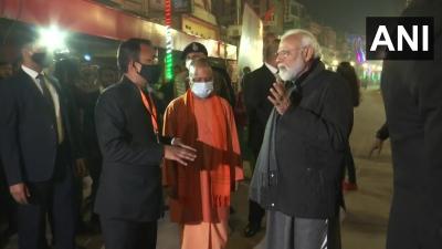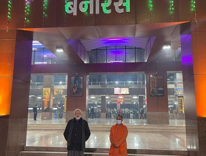 प्रधानमंत्री नरेंद्र मोदी उत्तर प्रदेश के मुख्यमंत्री योगी आदित्यनाथ के साथ सोमवार को मध्यरात्रि के बाद वाराणसी की सड़कों पर निकले और काशी विश्वनाथ धाम और बनारस रेलवे स्टेशन का दौरा किया।