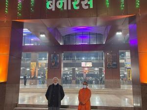 1 / 11प्रधानमंत्री नरेंद्र मोदी उत्तर प्रदेश के मुख्यमंत्री योगी आदित्यनाथ के साथ सोमवार को मध्यरात्रि के बाद वाराणसी की सड़कों पर निकले और काशी विश्वनाथ धाम और बनारस रेलवे स्टेशन का दौरा किया।2 / 11देर रात करीब एक बजे पोस्ट किए गए एक ट्वीट में मोदी ने कहा कि उन्होंने वाराणसी में ‘‘प्रमुख विकास कार्यों’’ का निरीक्षण किया। वाराणसी 2014 से प्रधानमंत्री का संसदीय क्षेत्र है। वह सोमवार को दो दिवसीय दौरे पर यहां पहुंचे। मोदी सोमवार सुबह काल भैरव मंदिर गए थे।3 / 11 दोपहर में उन्होंने महत्वाकांक्षी काशी विश्वनाथ गलियारा परियोजना के पहले चरण का उद्घाटन किया, जिसे ‘काशी विश्वनाथ धाम’ कहा जाता है और शाम को उन्होंने भव्य गंगा ‘‘आरती’’ और ‘लाइट एंड साउंड’ शो देखा।4 / 11मध्यरात्रि के कुछ समय बाद एसपीजी सुरक्षा कर्मियों से घिरे प्रधानमंत्री गोदौलिया चौक के पास वाराणसी की सड़कों पर टहल रहे थे, इस दौरान उनके स्वागत के लिए मार्ग को सजाया गया था और लोग ‘‘हर हर महादेव’’ और ‘‘मोदी, मोदी’’ के नारे लगा रहे थे।5 / 11मोदी ने एक ट्वीट में कहा, ‘‘काशी में प्रमुख विकास कार्यों का निरीक्षण कर रहा हूं। इस ऐतिहासिक शहर के लिए हर संभव सर्वोत्तम बुनियादी ढांचा तैयार करने का हमारा प्रयास है।’’6 / 11मोदी ने काशी विश्वनाथ धाम की अपनी देर रात की यात्रा की तस्वीरें भी साझा कीं, जिसका उन्होंने कुछ घंटे पहले लोकार्पण किया था। मोदी ने इस तरह रात्रि में भ्रमण कर लोगों को लोगों को चकित कर दिया, वहीं सुरक्षा कर्मी यह सुनिश्चित कर रहे थे कि कोई व्यक्ति प्रधानमंत्री के करीब न जाए।7 / 11बाद में एक अन्य ट्वीट में प्रधानमंत्री ने कहा, ‘‘अगला पड़ाव... बनारस स्टेशन। हम रेल संपर्क बढ़ाने के साथ-साथ स्वच्छ, आधुनिक और यात्री अनुकूल रेलवे स्टेशनों को सुनिश्चित करने के लिए काम कर रहे हैं।’’ उन्होंने देर रात एक बजे के बाद रेलवे स्टेशन के अपने दौरे की तस्वीरें भी साझा कीं, जिसे हाल में पुनर्विकसित कर सजाया संवारा गया था।8 / 11बनारस रेलवे स्टेशन को पहले मंडुआडीह के नाम से जाना जाता था और इस साल की शुरुआत में इसका नाम बदला गया। भारतीय रेलवे के ट्विटर हैंडल ने सोमवार रात को स्टेशन की तस्वीरें साझा की थीं। स्टेशन को सजाया, संवारा गया था।9 / 11प्रधानमंत्री सोमवार सुबह जब वाराणसी की सड़कों पर निकले तब ‘‘हर हर महादेव’’ और ‘‘मोदी, मोदी’’ के नारों के बीच गुलाब के फूल बरसाए गए, सड़कों पर उनके अभिवादन और प्रशंसा में विशाल पोस्टर लगे हैं।10 / 11काल भैरव मंदिर की यात्रा के बाद प्रधानमंत्री का काफिला जब संकरी गलियों से गुजर रहा था तब एक व्यक्ति ने उन्हें गुलाबी ‘‘पगड़ी’’ और पीताबंरी भेंट करने की कोशिश की, लेकिन सुरक्षा कर्मियों ने उसे रोक दिया।11 / 11फिर मोदी ने कार के