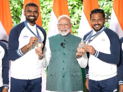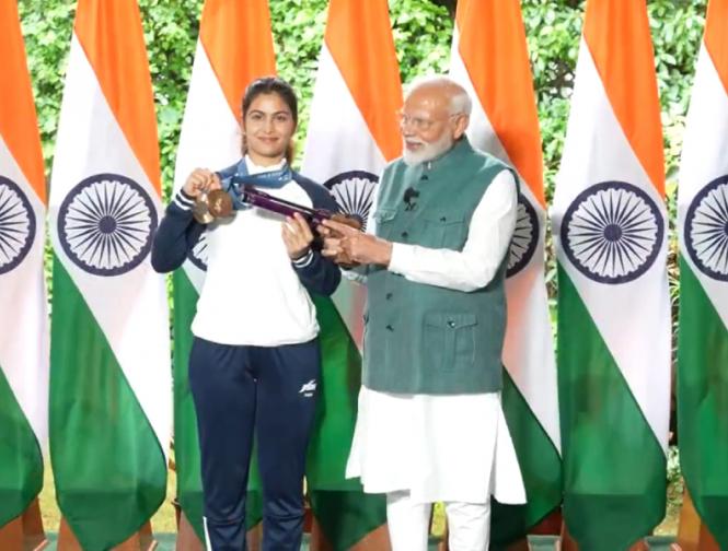 प्रधानमंत्री नरेंद्र मोदी ने आज पेरिस ओलंपिक 2024 के भारतीय पदकवीरों से ख़ास मुलाकात की। (फोटो- ANI)