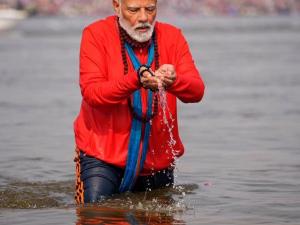 1 / 8प्रधानमंत्री नरेन्द्र मोदी बुधवार को सुबह प्रयागराज में आयोजित महाकुंभ 2025 में पहुंचे और त्रिवेणी संगम में डुबकी लगाई। 2 / 8भगवा रंग का वस्त्र पहने मोदी ने स्नान करने के बाद गंगा को प्रणाम करते हुए सूर्यदेव को अर्घ्य दिया। 3 / 8अधिकारियों ने बताया कि प्रधानमंत्री बुधवार की सुबह अरैल घाट के पास बने हेलीपैड पर हेलीकॉप्टर से पहुंचे और वहां से मुख्यमंत्री योगी आदित्यनाथ उन्हें बोट से लेकर संगम पहुंचे जहां प्रधानमंत्री ने डुबकी लगाई। 4 / 8इससे पूर्व, 13 दिसंबर, 2024 को अपनी प्रयागराज यात्रा के दौरान, प्रधानमंत्री ने 5,500 करोड़ रुपये मूल्य की 167 परियोजनाओं का लोकार्पण किया था जिससे महाकुंभ के दौरान आम श्रद्धालुओं को आवागमन में काफी सुविधा मिली। 5 / 8उल्लेखनीय है कि प्रयागराज महाकुंभ में बुधवार को सुबह 10 बजे तक 10 लाख कल्पवासियों समेत 47.30 लाख लोगों ने गंगा और संगम में डुबकी लगाई। 6 / 8वहीं 13 जनवरी, 2025 से शुरू हुए महाकुंभ में मंगलवार तक 38.29 करोड़ से अधिक लोग संगम में स्नान कर चुके हैं।7 / 8महाकुंभ 2025 में प्रधानमंत्री मोदी को देखकर जनता काफी उत्साहित है।8 / 8प्रयागराज पहुंचे प्रधानमंत्री मोदी की फोटो और वीडियो सोशल मीडिया पर वायरल हो रही हैं।