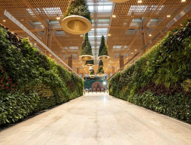 केम्पेगौड़ा अंतरराष्ट्रीय एयरपोर्ट का टर्निमल-2 में यात्री 10,000+वर्गमीटर की ग्रीन वॉल्स, हैंगिंग गार्डन्स और आउटडोर गार्डन्स से होकर यात्रा करेंगे। (फोटो: Twitter)