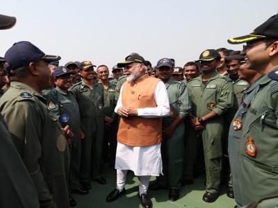प्रधानमंत्री नरेन्द्र मोदी मंगलवार की सुबह पंजाब में आदमपुर वायु सेना केंद्र पहुंचे और उन्होंने वहां वायु सेना के जवानों से बातचीत की। आधिकारिक सूत्रों ने यह जानकारी दी।