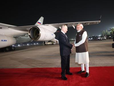 प्रधानमंत्री नरेंद्र मोदी ने गुरुवार को दिल्ली के पालम एयरपोर्ट पर रूस के राष्ट्रपति व्लादिमीर पुतिन का स्वागत किया।