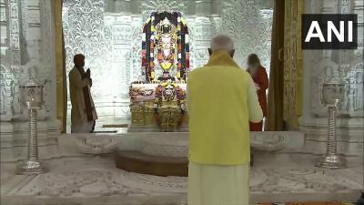 व्यस्त चुनाव प्रचार कार्यक्रम के बीच, नरेंद्र मोदी रविवार को उत्तर प्रदेश पहुंचे और प्रधानमंत्री के स्वागत के लिए अयोध्या को पूरी तरह से सजाया गया था। सुनहरा कुर्ता-सफेद पैंट और सुनहरा जैकेट पहने नरेंद्र मोदी ने भगवान राम लला की मूर्ति को 'साष्टांग दंडवत' (साष्टांग लेटकर) प्रणाम किया।