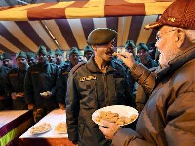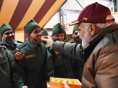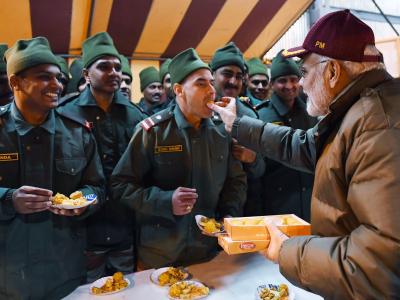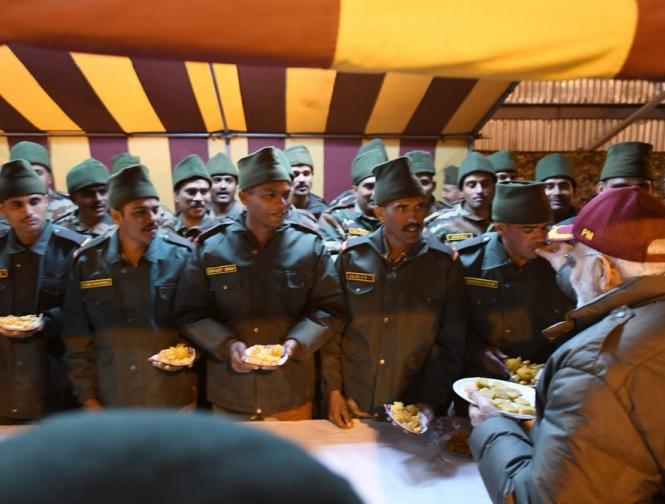 यहां पीएम मोदी ने अपने हाथों से जवानों को मिठाई खिलाकर दिवाली मनाई।