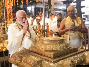 1 / 6अयोध्या स्थित राम मंदिर प्राण प्रतिष्ठा से पहले प्रधानमंत्री नरेंद्र मोदी ने 11 दिनों के अनुष्ठान की घोषणा की है जिसके तहत वह कड़े नियमों का पालन करेंगे। इसी कड़ी में पीएण मोदी आज केरल के दो दिवसीय दौरे पर पहुंचे हुए हैं। जहां वह त्रिशूर जिले में दो महत्वपूर्ण मंदिरों का दौरा करेंगे।2 / 6उन्होंने पारंपरिक पोशाक 'मुंडू' और 'वेष्टि' (सफेद शॉल) पहनकर गुरुवयूर के प्रसिद्ध भगवान कृष्ण मंदिर में प्रार्थना करके अपने दिन की शुरुआत की।3 / 6उन्होंने आंध्र प्रदेश के लेपाक्षी में ऐतिहासिक वीरभद्र मंदिर का दौरा किया, जिसका रामायण में जटायु प्रसंग के साथ बहुत महत्व है। उन्होंने आज त्रिशूर जिले के त्रिप्रयार श्री रामस्वामी मंदिर में भी पूजा-अर्चना की। इस दौरान उन्होंने सफेद रंग की पोशाक पहनी हुई है।4 / 6आंध्र प्रदेश और केरल के मंदिरों का दौरा सोमवार को अयोध्या में राम मंदिर के विशाल 'प्राण प्रतिष्ठा' समारोह से कुछ दिन पहले हो रहा है। पिछले हफ्ते पीएम नासिक में थे जहां उन्होंने कालाराम मंदिर में पूजा-अर्चना की थी।5 / 6गौरतलब है कि पीएम मोदी अपने 11 दिवसीय अनुष्ठान मना रहे हैं, एक आध्यात्मिक प्रयास जिसमें वह 'प्राण प्रतिष्ठा' समारोह से पहले, भगवान राम से जुड़े भारत भर के विभिन्न मंदिरों में पूजा-अर्चना करेंगे। अपने 'अनुष्ठान' के हिस्से के रूप में, पीएम मोदी शुक्रवार से सीमित उपवास - दिन में एक बार भोजन - पर हैं।6 / 619 जनवरी से वह दिन में केवल फल खा सकते हैं। वह अयोध्या में 'प्राण प्रतिष्ठा' के दिन उपवास करेंगे और फर्श पर एक लकड़ी के तख्ते पर कंबल बिछाकर सोएंगे। राम मंदिर के बहुप्रतीक्षित प्रतिष्ठा समारोह में एक सप्ताह से भी कम समय बचा होने पर, पीएम मोदी ने मंगलवार को कहा कि पूरा देश आजकल 'राममय' है।