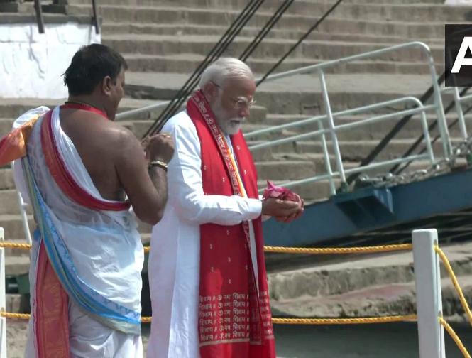 PM Narendra Modi Nomination live Updates: प्रधानमंत्री नरेन्द्र मोदी ने मंगलवार को वाराणसी लोकसभा क्षेत्र से अपना नामांकन भरने से पहले यहां गंगा नदी के किनारे दशाश्वमेध घाट पर पूजा-अर्चना की। प्रधानमंत्री ने वैदिक मंत्रोच्चार के बीच गंगा घाट पर आरती भी की।