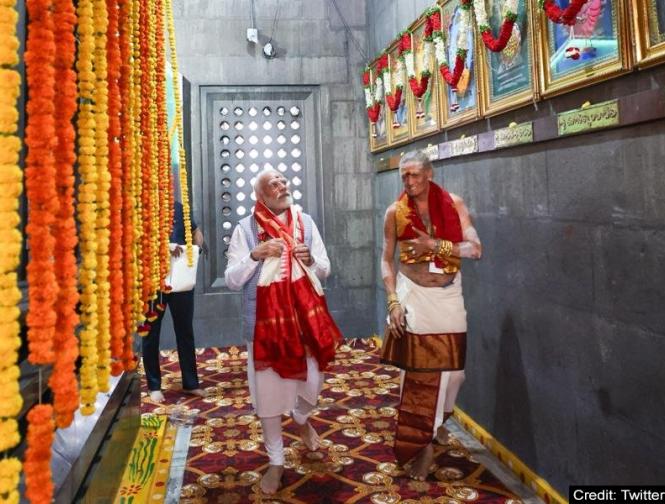 Modi in Telangana: उज्जैनी महाकाली मंदिर में पीएम मोदी ने लिया आशीर्वाद, देखें तस्वीरें