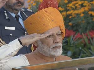 1 / 6 भारत आज अपना 70वां गणतंत्र दिवस मना रहा है। इस मौके पर देशवासियों में जश्न का माहौल है। मुख्य समारोह राजधानी दिल्ली के राजपथ में हो रहा है।2 / 6साल 2019 के गणतंत्र दिवस परेड में भी पीएम मोदी की रंग-बिरंगी पगड़ी आकर्षण का केंद्र रही।3 / 6साल 2018 में पीएम मोदी पीले और हरे रंग की पगड़ी पहने नेहरू जैकेट में नजर आए थे।4 / 6पीएम मोदी ने 2017 के गणतंत्र दिवस परेड में गुलाबी पगड़ी के साथ सफेद रंग का कुर्ता-पायजामा पहना था।5 / 6प्रधानमंत्री नरेंद्र मोदी 2016 में पीले रंग के इस साफे में नजर आए थे। कोट-पैंट के साथ पीएम मोदी ने यह पगड़ी पहनी थी।6 / 62015 में पीएम मोदी ने बेहद आकर्षक पगड़ी पहनी थी। उस वर्ष गणतंत्र दिवस परेड के मुख्य अतिथि अमेरिकी राष्ट्रपति बराक ओबामा थे।