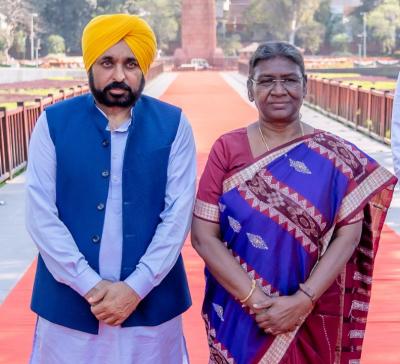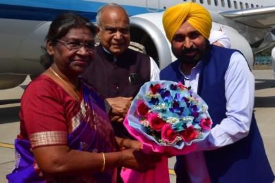 राष्ट्रपति द्रौपदी मुर्मू के एक दिवसीय दौरे के मोके पर उनके साथ पंजाब के मख्यमंत्री भगवंत मान भी नजर आए। (फोटो: Twitter)