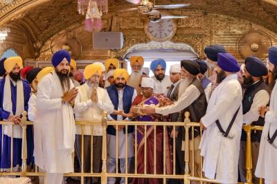 राष्ट्रपति द्रौपदी मुर्मू, मुख्यमंत्री भगवंत मान के साथ स्वर्ण मंदिर के पवित्र स्थान पहुंची। (फोटो: Twitter)