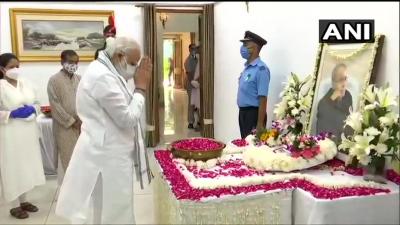 थोड़ी देर बाद प्रधानमंत्री नरेंद्र मोदी भी प्रणब मुखर्जी के आवास पहुंचे और श्रद्धांजलि दी। पीएम मोदी इस दौरान थोड़ी देर वहां रूके और प्रणब मुखर्जी की बेटी और बेटे से मुलाकात की और संवेदना व्यक्त की।