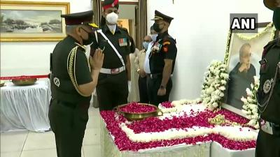 उन्हें सबसे पहले चीफ ऑफ डिफेंस स्टाफ जनरल बिपिन रावत सहित आर्मी चीफ जनरल एमएम नरवणे, एयर फोर्स चीफ मार्शल आरकेएस भदौरिया और नेवी चीफ एडमिरल करमबीर सिंह ने श्रद्धांजलि दी।