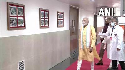 अत्याधुनिक अस्पताल का उद्घाटन करने के तुरंत बाद प्रधानमंत्री नरेंद्र मोदी ने एम्स बिलासपुर का किया निरीक्षण। (फोटो: Twitter)