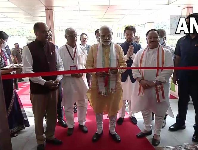 इस अवसर पर भाजपा के राष्ट्रीय अध्यक्ष जेपी नड्डा और मुख्यमंत्री जयराम ठाकुर भी उपस्थित रहे। (फोटो: Twitter)