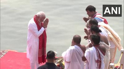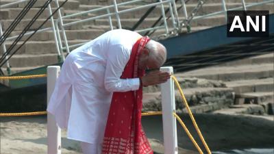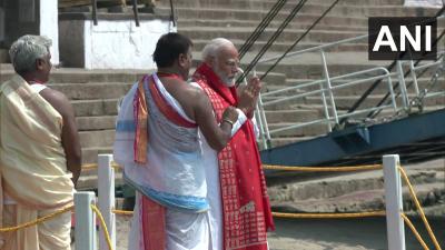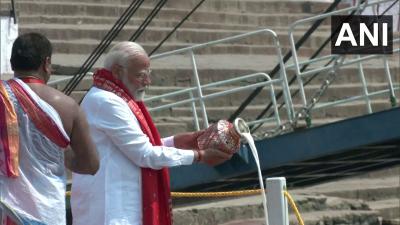 प्रधानमंत्री नरेंद्र मोदी ने वाराणसी के दशाश्वमेध घाट पर पूजा-अर्चना की। (फोटो क्रेडिट: एएनआई)