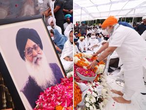 1 / 6प्रधानमंत्री नरेंद्र मोदी पंजाब के पूर्व मुख्यमंत्री प्रकाश सिंह बादल को श्रद्धांजलि देने के लिए अकाली दल (शिअद) कार्यालय पहुंचे और बादल के पार्थिव शरीर पर पुष्पांजलि अर्पित की। (फोटो: ट्विटर)2 / 6शिरोमणि अकाली दल के संरक्षक प्रकाश सिंह बादल के पार्थिव शरीर को पार्टी कार्यालय में रखा गया है। जहां बड़ी संख्या में लोग और नेता एकत्र हुए हैं। (फोटो: ट्विटर)3 / 6पांच बार के मुख्यमंत्री रहे प्रकाश सिंह बादल को सांस लेने में तकलीफ की शिकायत के बाद 16 अप्रैल को मोहाली के फोर्टिस अस्पताल में भर्ती कराया गया था। मंगलवार रात करीब आठ बजे अंतिम सांस ली। वह 95 वर्ष के थे। (फोटो: ट्विटर)4 / 6प्रधानमंत्री नरेंद्र मोदी ने बादल के निधन को 'व्यक्तिगत क्षति' बताते हुए ट्वीट किया, 'प्रकाश सिंह बादल के निधन से अत्यंत दुखी हूं। वह भारतीय राजनीति के एक विशाल व्यक्तित्व और एक उल्लेखनीय राजनेता थे। उन्होंने हमारे राष्ट्र के विकास में अहम योगदान दिया। उन्होंने पंजाब की प्रगति के लिए अथक प्रयास किए और महत्वपूर्ण समय के दौरान राज्य को नेतृत्व प्रदान किया।' (फोटो: ट्विटर)5 / 6पीएम मोदी ने कहा, 'मुझे उनके साथ हुई कई बातचीत याद है, जिसमें उनका विवेक हमेशा स्पष्ट रूप से झलकता था। उनके परिवार और अनगिनत समर्थकों के प्रति संवेदना।' (फोटो: ट्विटर)6 / 6केंद्र सरकार ने पंजाब के पूर्व मुख्यमंत्री के सम्मान में 26 और 27 अप्रैल को पूरे भारत में दो दिन के राजकीय शोक की घोषणा की है। (फोटो: ट्विटर)