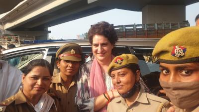 प्रियंका गांधी के साथ यूपी पुलिस की सेल्फियाँ वायरल, कल यूपी विधानसभा चुनाव में महिलाओं को 40% टिकट देने की घोषणा की थी