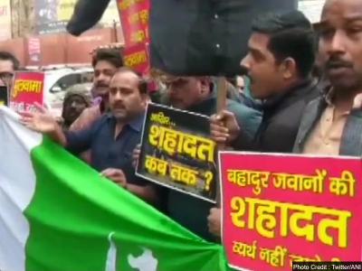 पुलवामा हमला: देशभर में जारी है विरोध प्रदर्शन, जलाए गए जैश-ए-मोहम्मद व पाकिस्तानी झंडे