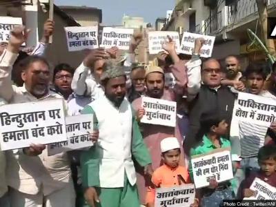 जम्मू-कश्मीर के पुलवामा में सीआरपीएफ के काफिले पर हुये आतंकी हमले के विरोध में शुक्रवार को औरंगाबाद के बेगमपुरा इलाके में लोगों ने विरोध प्रदर्शन किया और पाकिस्तानी झंडे जलाए।