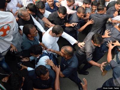 इस विरोध प्रदर्शन के बाद राहुल गांधी समते कई नेताओं ने गिरफ्तारी दी है।