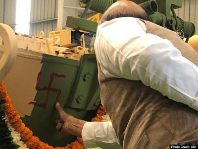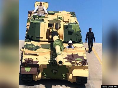 राजनाथ सिंह ने चलाई के-9 व्रज-टी तोप, देखें रक्षा मंत्री की वायरल तस्वीरें