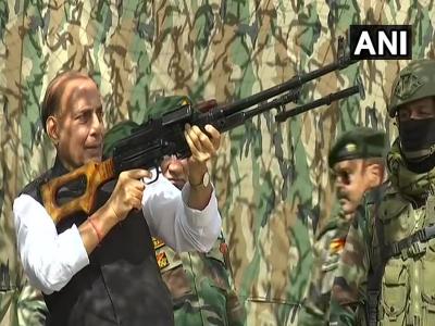 लेह दौरे पर गए रक्षा मंत्री राजनाथ सिंह ने थामी गन, कुछ इस तरह पैरा कमांडोज के अभ्यास में हुए शामिल, देखें तस्वीरें