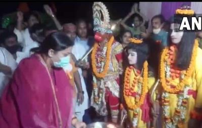 केंद्रीय मंत्री इस मौके पर अमेठी पहुंची और दुर्गा मंदिर में पूजा-पाठ के बाद रावण दहन कार्यक्रम में हिस्सा लिया।