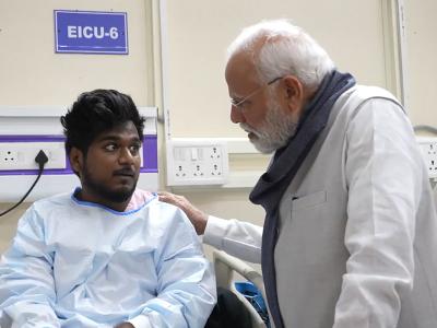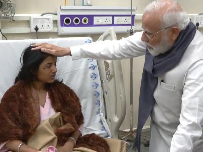 भूटान की दो दिवसीय राजकीय यात्रा के बाद दिल्ली लौट आए प्रधानमंत्री मोदी ने लाल किला के निकट हुए विस्फोट के पीड़ितों से एलएनजेपी अस्पताल में मुलाकात की।