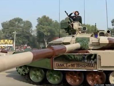 भारतीय सेना का T-90 भीष्म टैंक पेश किया गया है। इसकी कमान राजपथ पर 86 आर्मर्ड रेजिमेंट के कैप्टन सनी चाहर के हाथों में है।