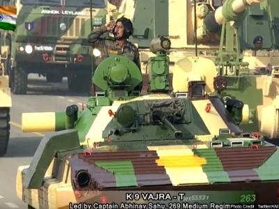 राजपथ पर के-9 वज्र-टी (K-9 VAJRA-T ) ने ताकत दिखाई। कैप्टन अभिनव साहू ने राष्ट्रपति को सलामी दी।
