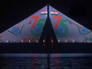 1 / 675वें गणतंत्र दिवस की पूर्व संध्या पर बांद्रा-वर्ली समुद्री लिंक को विभिन्न रंगों की लाइटों से सजाया गया।2 / 6जम्मू-कश्मीर: 75वें गणतंत्र दिवस की पूर्व संध्या पर श्रीनगर के लाल चौक के घंटाघर को तिरंगे के रंगों से रोशन किया गया।3 / 6जयपुर, राजस्थान: 75वें गणतंत्र दिवस के अवसर पर सरकारी इमारतों, प्रमुख सड़कों और स्मारकों को रोशनी से सजाया गया।4 / 6नवी मुंबई, ठाणे (महाराष्ट्र): नवी मुंबई नगर निगम भवन गणतंत्र दिवस के अवसर पर तिरंगे की रोशनी से जगमगा रहा है।5 / 6कोलकाता, पश्चिम बंगाल: 75वें गणतंत्र दिवस की पूर्व संध्या पर राज भवन, मेट्रो भवन, बिड़ला औद्योगिक और तकनीकी संग्रहालय (BITM) को तिरंगे के रंग से रोशन किया गया।6 / 6मुंबई: 75वें गणतंत्र दिवस की पूर्व संध्या पर छत्रपति शिवाजी महाराज अंतर्राष्ट्रीय हवाईअड्डा को तिरंगे रंग से रोशन किया गया।