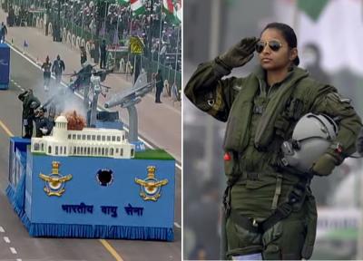 भारतीय वायु सेना की झांकी, राफेल की एकमात्र महिला फाइटर शिवांगी सिंह ने राष्ट्रपति रामनाथ कोविंद को सलामी दी। (फोटो: ट्विटर)