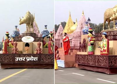 राजपथ पर यूपी की झांकी में नई सूक्ष्म, लघु और मध्यम उद्यम नीति और औद्योगिक विकास नीति के आधार पर 'एक जिला एक उत्पाद' के माध्यम से कौशल विकास और रोजगार के माध्यम से उपलब्धि प्रदर्शित करता है। काशी विश्वनाथ कॉरिडोर में विकास का भी प्रदर्शन (फोटो: ट्विटर)
