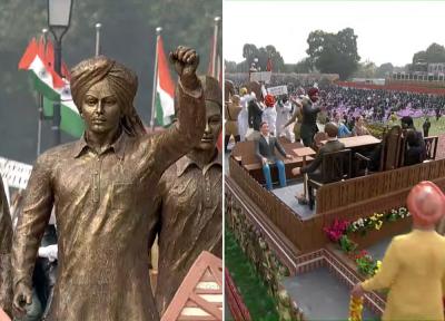 पंजाब की झांकी में 'स्वतंत्रता संग्राम में पंजाब के योगदान' को दर्शाया गया है, जिसमें भगत सिंह, राजगुरु और सुखदेव को दर्शाया गया है। इसमें लाला लाजपत राय और उधम सिंह के नेतृत्व में साइमन कमीशन के खिलाफ माइकल ओ डायर को गोली मारने के विरोध को भी दर्शाया गया है। (फोटो: ट्विटर)