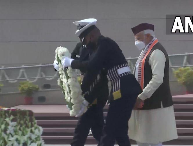 प्रधानमंत्री नरेंद्र मोदी ने 73वें गणतंत्र दिवस के अवसर पर राष्ट्रीय वॉर मेमोरियल पहुंचकर करीब 26000 जवानों को श्रद्धांजलि दी। (फोटो: ट्विटर)