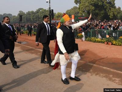 गणतंत्र दिवस पर तिरंगी पगड़ी बांधे हिन्दुस्तानी लिबास में दिखे पीएम मोदी, तस्वीरें