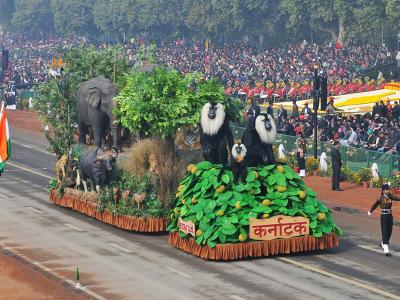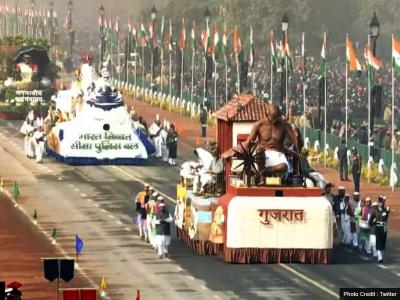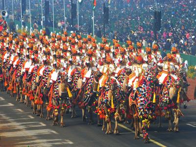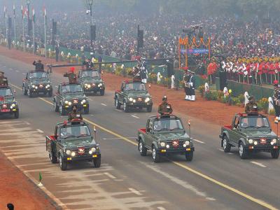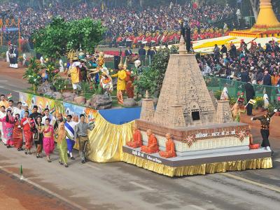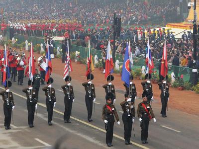 परेड इस बार आसियान देशों का झंडा लेकर निकली थी।