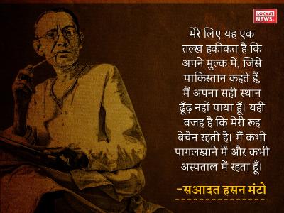 सआदत हसन मंटो का जन्म- 11 मई, 1912 को समराला, पंजाब में हुआ था।