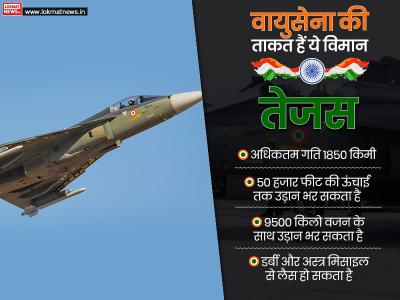 तेजस: अधिकतम गति 1850 किमी, 50 हजार फीट की ऊंचाई तक उड़ान भर सकता है, 9,500 किलो वजन के साथ उड़ान भर सकता है, डर्बी और अस्त्र मिसाइल से लैस हो सकता है