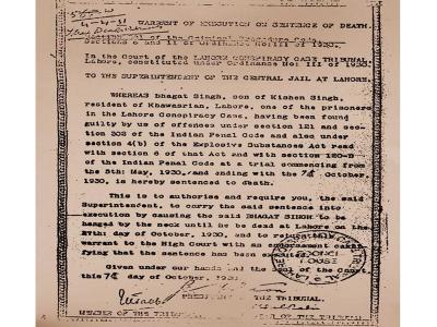 भगत सिंह के खिलाफ जारी डेथ वारंट की कॉपी है।