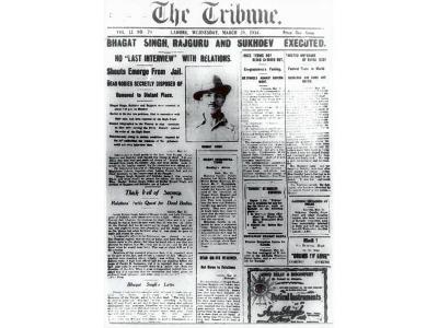 ट्रिब्यून अखबार में भगत सिंह, राजगुरु और सुखदेव को फांसी दिए जाने की खबर।