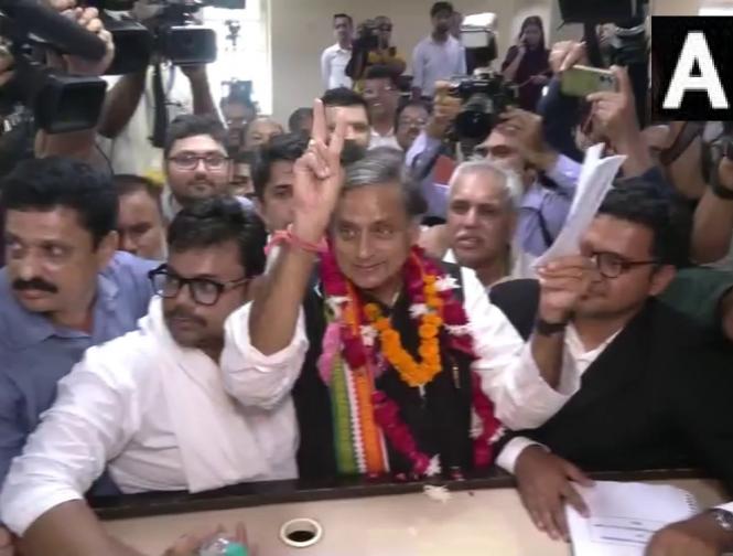 कांग्रेस के वरिष्ठ नेता शशि थरूर ने पार्टी अध्यक्ष पद के चुनाव के लिए शुक्रवार को नामांकन पत्र दाखिल किया। (फोटो: Twitter/ANI)