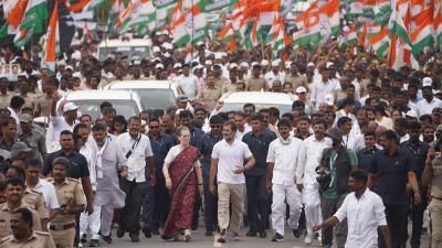 सोनिया ने मांड्या जिले के डाक बंगला इलाके से पदयात्रा आरंभ की। (फोटो: Twitter)