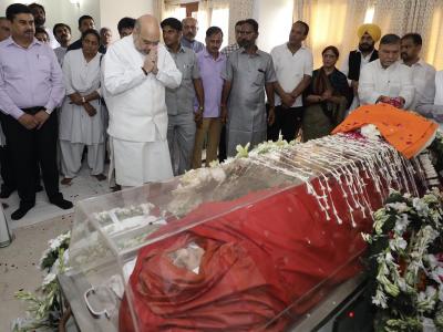 गृह मंत्री अमित शाह ने सुषमा स्वराज के आवास पहुंचकर श्रद्धांजलि दी।