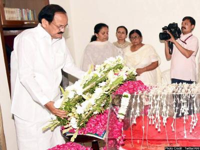 उप-राष्ट्रपति एम वेंकैया नायडू ने सुषमा स्वराज के आवास पहुंचकर श्रद्धांजलि दी।