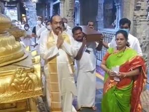 1 / 7हैदराबाद के एक श्रद्धालु ने सोमवार को तिरुपति के पास तिरुमला पहाड़ी मंदिर में भगवान वेंकटेश्वर को दो किलोग्राम सोने और तीन किलो चांदी से बनी तलवार भेंट की।2 / 7मंदिर के एक अधिकारी ने यह जानकारी दी। 3 / 7कारोबारी श्रद्धालु ने भगवान को सूर्यकटारी अर्पित की। 4 / 7अधिकारी ने बताया कि तिरुमला-तिरुपति देवस्थानम के अतिरिक्त कार्यकारी अधिकारी ए वेंकट धर्म रेड्डी ने यह तलवार हासिल की। 5 / 7यह तलवार दो किलोग्राम सोने और तीन किलो चांदी से बनी है और इसकी कीमत एक करोड़ रुपये है। 6 / 7श्री वेंकटेश्वर मंदिर आंध्र प्रदेश के चित्तूर जिले में तिरुमाला की पहाड़ी पर स्थित एक प्रसिद्ध मंदिर है। यहां रोजाना हजारों की संख्या में श्रद्धालु आते हैं। तिरुपति श्री वेंकटेश्वर मंदिर भारत का दूसरा सबसे धनी मंदिर है। 7 / 7