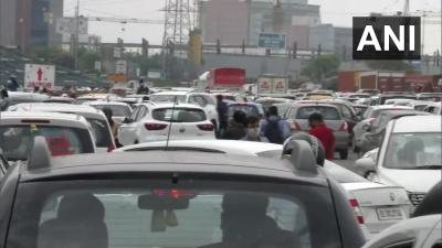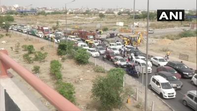 दिल्ली-गुरुग्राम राजमार्ग के अलावा उत्तर प्रदेश और दिल्ली सीमा पर भी भारी ट्रैफिक जाम देखा गया। (फोटो सोर्स- ANI)