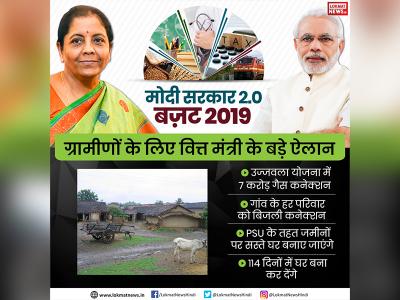 ग्रामीणों के लिए वित्त मंत्री के बड़े ऐलान: उज्जवला योजना में 7 करोड़ गैस कनेक्शन, गांव के हर परिवार को बिजली कनेक्शन, PSU के तहत जमीनों पर सस्ते घर बनाए जाएंगे, 114 दिनों में घर बना कर देंगे।