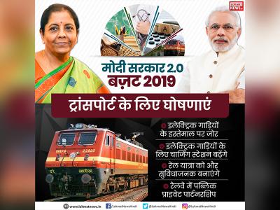 ट्रांसपोर्ट के लिए घोषणाएं: इलेक्ट्रिक गाड़ियों के इस्तेमाल पर जोर, इलेक्ट्रिक गाड़ियों के लिए चार्जिंग स्टेशन बढ़ेंगे, रेल यात्रा को और सुविधाजनक बनाएंगे, रेलवे में पब्लिक प्राइवेट पार्टनरशिप।
